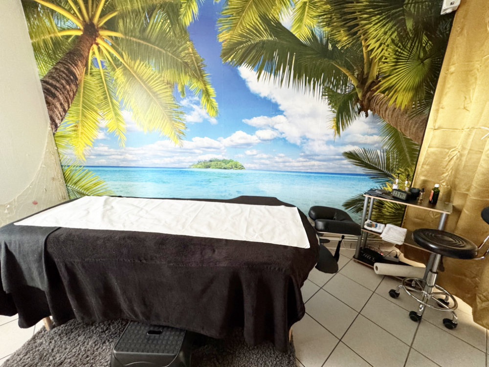 Un espace ou l'on se sent bien, une décoration qui vous transporte direct à la plage ! Vous êtes immergé dans une annimation sonore plage avec le bruit des vagues et le chant des mouettes... Que du bonheur ! Vous êtes massé de la tête au pied dans la joie et la bonne humeur.
